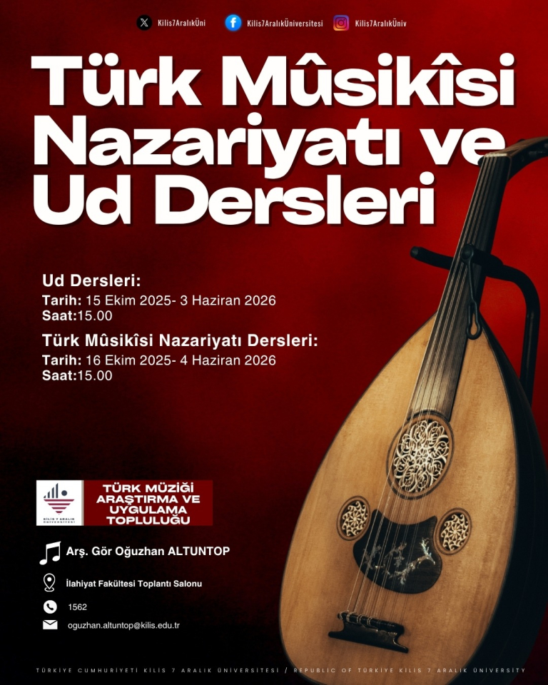 Dersler, İlahiyat Fakültesi öğretim üyesi Arş. Gör. Oğuzhan Altuntop tarafından verilecektir. Program kapsamında Türk musikisinin temel nazari bilgileri, makam ve usûl yapıları ile ud icrasına yönelik hem teorik hem de uygulamalı eğitimler sunulacaktır.